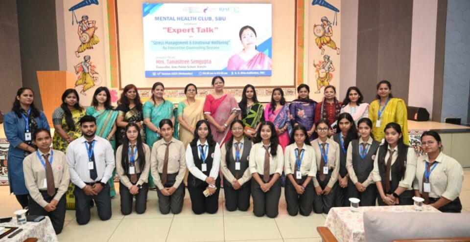 राँची (ख़बर आजतक) : एसबीयू विश्वविद्यालय के मेंटल हेल्थ क्लब द्वारा “स्ट्रेस मैनेजमेंट और इमोशनल वेलबीइंग” विषय पर विवि सभागार में विशेषज्ञ सत्र आयोजित किया गया। मुख्य वक्ता थेरेपिस्ट व काउंसलर तनुश्री सेनगुप्ता (वरिष्ठ परामर्शदाता, आर्मी पब्लिक स्कूल) ने छात्राओं को अच्छे कर्मों को याद रखने, स्वयं को माफ करने और कृतज्ञता अपनाने की सलाह दी।