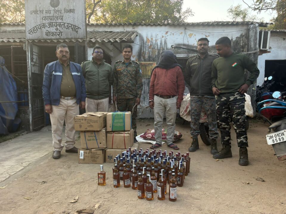 कसमार (ख़बर आजतक) : सहायक आयुक्त उत्पाद, बोकारो के निर्देशानुसार प्राप्त गुप्त सूचना के आधार पर उत्पाद विभाग की टीम ने कसमार थाना अंतर्गत खैराचातर स्थित महाबीर चौक के पास चिंटू शू सेंटर में छापामारी की। छापामारी के दौरान दुकान से विभिन्न ब्रांड की अवैध विदेशी शराब बरामद की गई। मौके से अनीश कुमार जायसवाल को गिरफ्तार किया गया है।