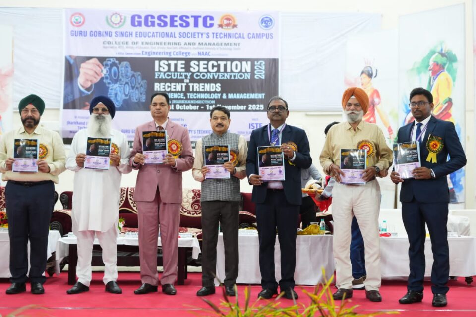 बोकारो (ख़बर आजतक) : गुरु गोबिंद सिंह एजुकेशनल सोसायटीज़ टेक्निकल कैंपस, बोकारो में इंडियन सोसायटी फॉर टेक्निकल एजुकेशन (ISTE) तथा झारखंड यूनिवर्सिटी ऑफ टेक्नोलॉजी (JUT) के तत्वावधान में “आई.ए.टी.ई. फैकल्टी कन्वेंशन 2025 – बिहार व झारखंड सेक्शन” का दो दिवसीय कार्यक्रम आरंभ हुआ। उद्घाटन सत्र के मुख्य अतिथि आई.एस.टी.ई. नई दिल्ली के सचिव डॉ. एस.एम. अली रहे, जबकि जे.यू.टी. रांची के कुलपति डॉ. डी.के. सिंह वर्चुअल माध्यम से कार्यक्रम से जुड़े। गुरु गोबिंद सिंह एजुकेशनल सोसायटी के अध्यक्ष तरसेम सिंह, सचिव सुरेन्द्र पाल सिंह तथा आई.एस.टी.ई. बिहार-झारखंड सेक्शन के अध्यक्ष एवं एम.आई.टी. मुजफ्फरपुर के प्राचार्य डॉ. एम.के. झारहे भी विशिष्ट अतिथि के रूप में उपस्थित रहे।