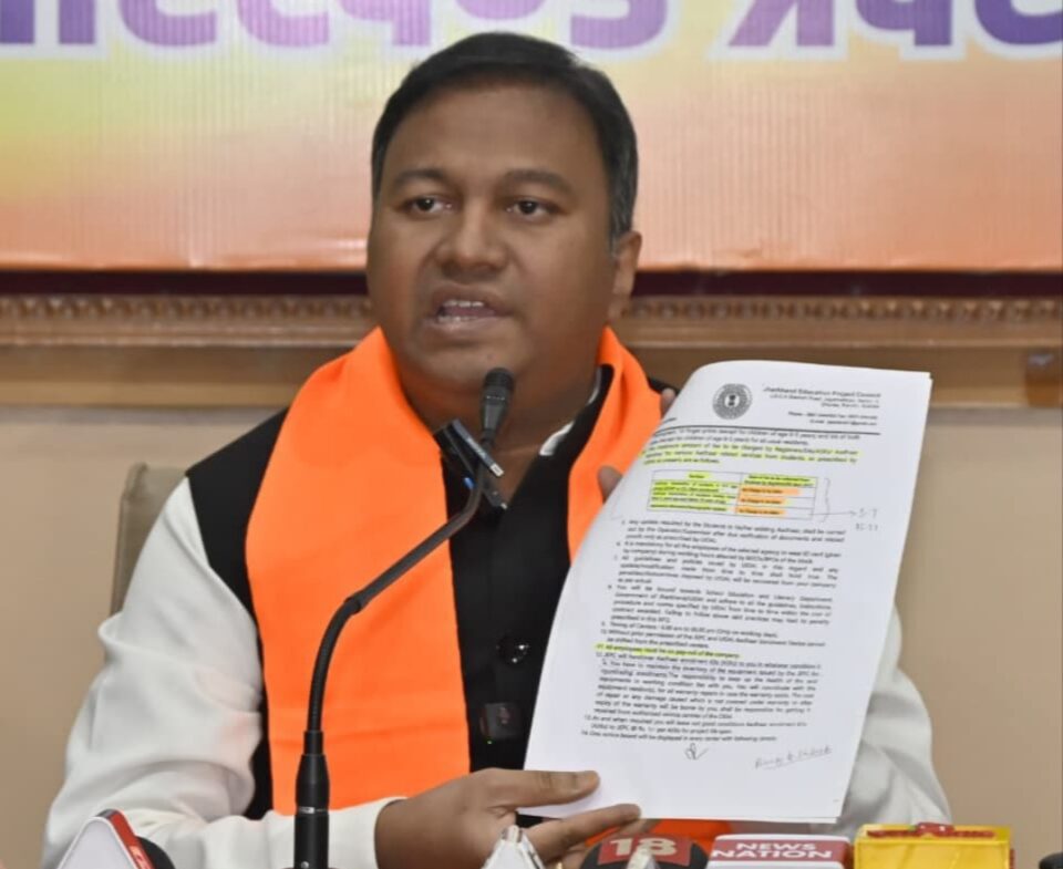 राँची (ख़बर आजतक) : भाजपा ने एक प्रेसवार्ता कर झारखंड शिक्षा विभाग पर 75 करोड़ रुपये के बड़े “आधार स्कैम” का आरोप लगाया। प्रदेश प्रवक्ता अजय साह ने कहा कि हेमंत सरकार के संरक्षण में शिक्षा विभाग और MKS एंटरप्राइज़ की मिलीभगत से पिछले दो वर्षों में स्कूली छात्रों से अवैध वसूली की गई।