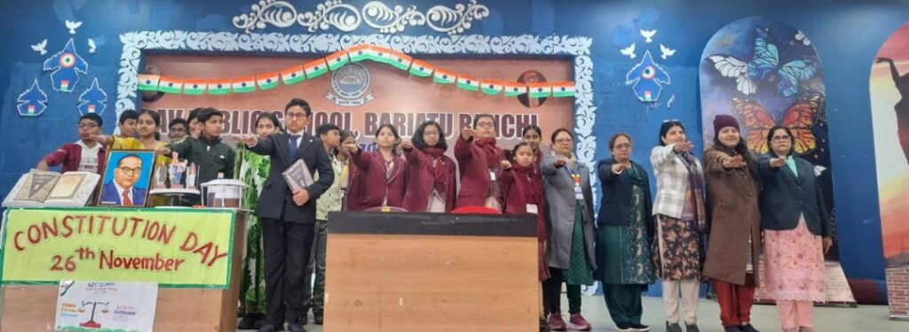 इसी क्रम में संविधान दिवस पर विद्यालय में संविधान सप्ताह की शुरुआत की गई। प्रातःकालीन सभा में संविधान की महत्ता पर आधारित कार्यक्रम हुआ, संविधान निर्माताओं को श्रद्धांजलि दी गई और संविधान की प्रस्तावना का सामूहिक पाठ किया गया।