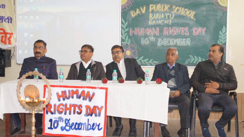 राँची (ख़बर आजतक) : मानवाधिकार दिवस पर राजधानी रांची के डीएवी पब्लिक स्कूल बरियातू और नीरजा सहाय डीएवी में जागरूकता कार्यक्रमों का आयोजन किया गया। डीएवी बरियातू में JHALSA और DLSA के संयुक्त तत्वावधान में विधिक साक्षरता क्लब द्वारा छात्रों को मानवाधिकार, किशोर न्याय अधिनियम, मुफ्त न्याय सहायता और दहेज हिंसा से सुरक्षा जैसे विषयों पर विस्तृत जानकारी दी गई। पंकज शर्मा और राजेश कुमार सिन्हा ने विद्यार्थियों के प्रश्नों के संतोषजनक जवाब दिए।