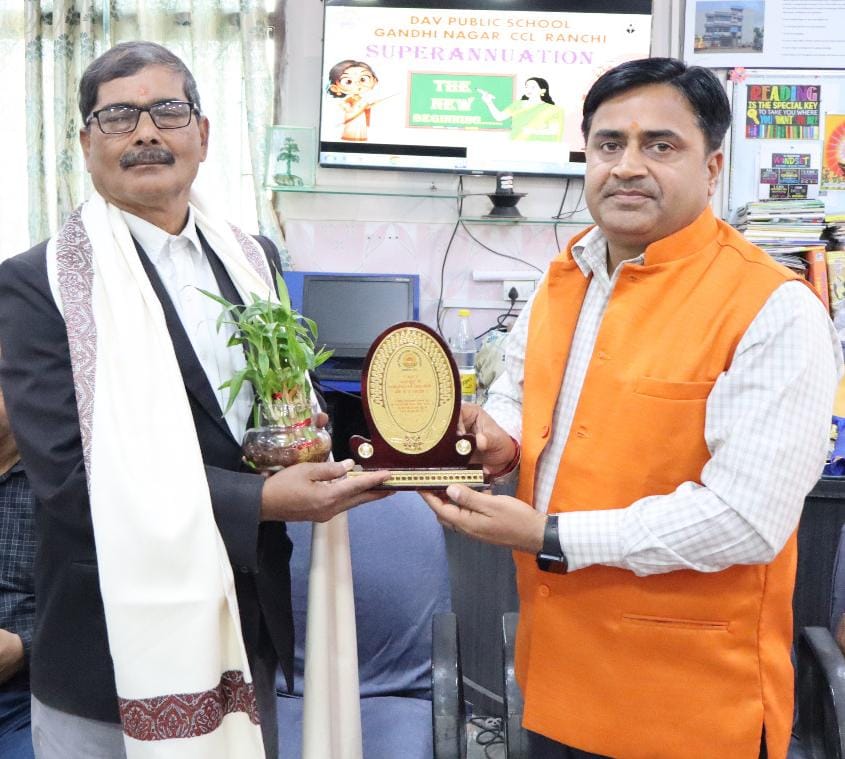 राँची : रांची स्थित डी ए वी पब्लिक स्कूल गांधीनगर में वरीय हिंदी प्राध्यापक डॉ. वैद्यनाथ मिश्र एवं इतिहास की प्राध्यापिका संध्या रानी पांडा को भावभीनी विदाई दी गई। समारोह में विद्यालय के सभी शिक्षक व शिक्षकेतर कर्मचारी उपस्थित रहे। प्राचार्य प्रदीप कुमार झा ने दोनों शिक्षकों के अमूल्य योगदान की सराहना करते हुए शॉल और स्मृति चिह्न प्रदान कर सम्मानित किया।