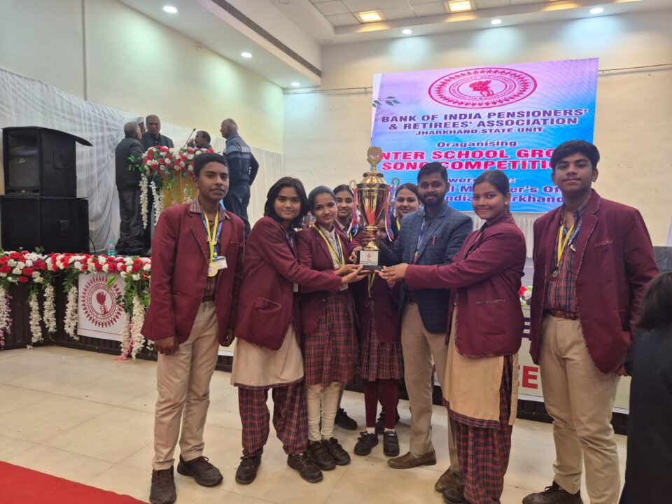 राँची (ख़बर आजतक) : डी.ए.वी. पब्लिक स्कूल बरियातु, रांची के विद्यार्थियों ने बैंक ऑफ इंडिया पेंशनर्स एवं रिटायरीज़ एसोसिएशन द्वारा गुरु नानक स्कूल में आयोजित अन्तर विद्यालयीय समूह गान प्रतियोगिता में प्रथम स्थान प्राप्त कर विद्यालय का नाम रोशन किया। इस प्रतियोगिता में कुल दस विद्यालयों के विद्यार्थियों ने अपनी गायन प्रतिभा का प्रदर्शन किया।