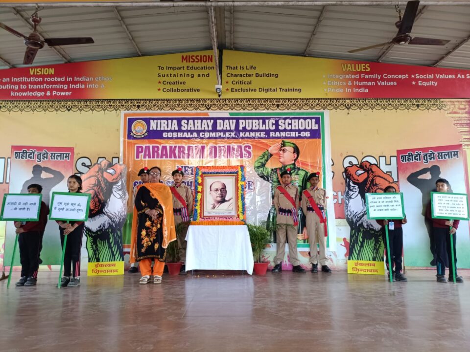 राँची : नीरजा सहाय विद्यालय में महान स्वतंत्रता सेनानी नेताजी सुभाष चंद्र बोस की जयंती हर्षोल्लास एवं देशभक्ति के वातावरण में मनाई गई। इस अवसर पर विद्यालय में विभिन्न सांस्कृतिक एवं शैक्षणिक कार्यक्रमों का आयोजन किया गया। प्राचार्या किरण यादव ने नेताजी की प्रतिमा पर पुष्प अर्पित कर माल्यार्पण किया और उन्हें श्रद्धांजलि दी। कार्यक्रम के दौरान विद्यार्थियों ने राष्ट्रभक्ति गीत प्रस्तुत किए तथा “भारत माता की जय” और “तुम मुझे खून दो, मैं तुम्हें आज़ादी दूंगा” जैसे प्रेरणादायी नारे लगाए। बच्चों को नेताजी के जीवन वृत्तांत और देशहित में उनके अतुलनीय योगदान से अवगत कराया गया। त्वरित प्रश्नोत्तरी प्रतियोगिता भी आयोजित की गई। प्राचार्या ने विद्यार्थियों से नेताजी के त्याग, साहस और बलिदान से प्रेरणा लेने का आह्वान किया। कार्यक्रम का सफल मंच संचालन छात्रा अनम रिजवान ने किया, जबकि शिक्षिका श्वेता सिन्हा ने धन्यवाद ज्ञापन प्रस्तुत किया। इस अवसर पर विद्यालय परिवार के सभी सदस्य उपस्थित रहे।