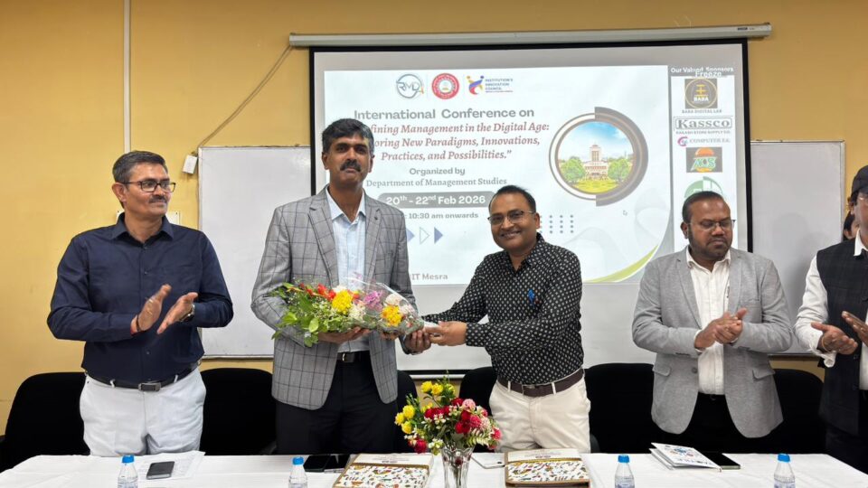 रांची (ख़बर आजतक) : बीआईटी मेसरा के प्रबंधन अध्ययन विभाग द्वारा आयोजित तीन दिवसीय अंतरराष्ट्रीय सम्मेलन ‘डिजिटल युग में प्रबंधन की नई परिभाषा (RMDA) 2026’ का रविवार को भव्य समापन हुआ। यह सम्मेलन डिजिटल परिवर्तन, कृत्रिम बुद्धिमत्ता (एआई) और प्रबंधन के बदलते आयामों पर केंद्रित रहा, जिसमें देश-विदेश के शिक्षाविदों, शोधार्थियों और उद्योग विशेषज्ञों ने भाग लिया।