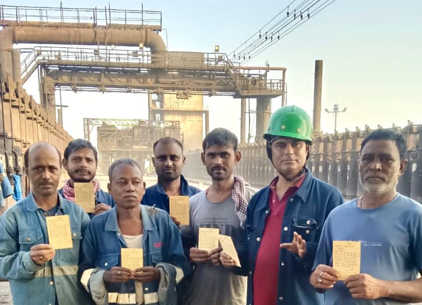 अभियान के अंतर्गत ब्लास्ट फ़र्नेस में ठेका कर्मी जन्मजय गोस्वामी, कोक ओवन में नीतेश चौधरी तथा आएमएचपी-सिंटर प्लांट में सेल कर्मी सागर कुमार के नेतृत्व में सैकड़ों कर्मचारियों ने पोस्टकार्ड भेजे।