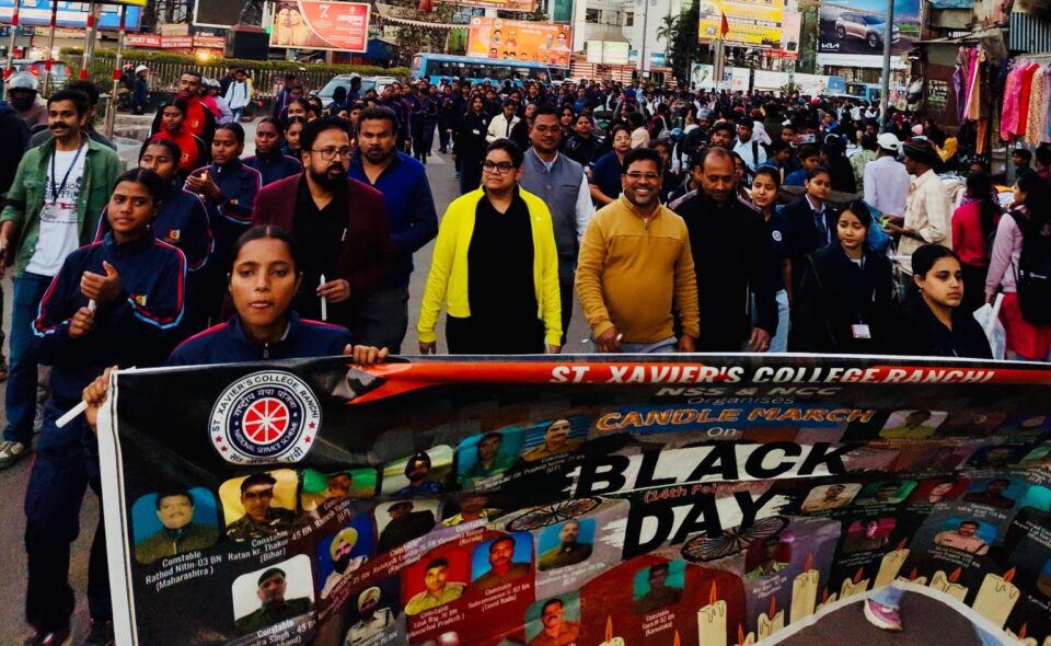 ब्लैक डे पर संत जेवियर्स कॉलेज एनसीसी का कैंडल मार्च