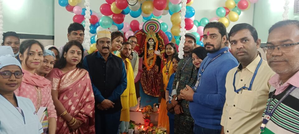 मुस्कान हॉस्पिटल में हर्षोल्लास के साथ बसंत पंचमी पर सरस्वती पूजा आयोजित