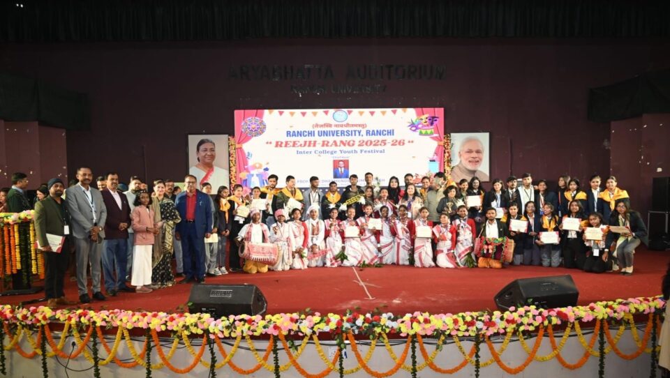 रांची (ख़बर आजतक) : रांची विश्वविद्यालय का इंटर कॉलेज यूथ फेस्ट ‘रीझ-रंग 2025–26’ शनिवार को सफलतापूर्वक संपन्न हो गया। 18 और 19 दिसंबर को आयोजित 26 इवेंट्स के विजेता छात्रों को आर्यभट्ट सभागार में आयोजित समारोह में प्रमाण पत्र और मेडल देकर सम्मानित किया गया। डीएसडब्ल्यू डॉ. सुदेश कुमार साहु, रजिस्ट्रार डॉ. जीसी साहु सहित अन्य पदाधिकारियों ने पुरस्कार प्रदान किए। फर्स्ट स्थान प्राप्त करने वाले छात्र अब ओडिशा के बालासोर में होने वाले ईस्ट जोन यूथ फेस्टिवल में रांची विश्वविद्यालय का प्रतिनिधित्व करेंगे। कार्यक्रम में कुलगीत, राष्ट्रगीत, करसा नृत्य और क्रिएटिव कोरियोग्राफी की आकर्षक प्रस्तुतियां दी गईं। समापन अवसर पर आयोजकों और सभी समितियों के सदस्यों के योगदान की सराहना की गई।
