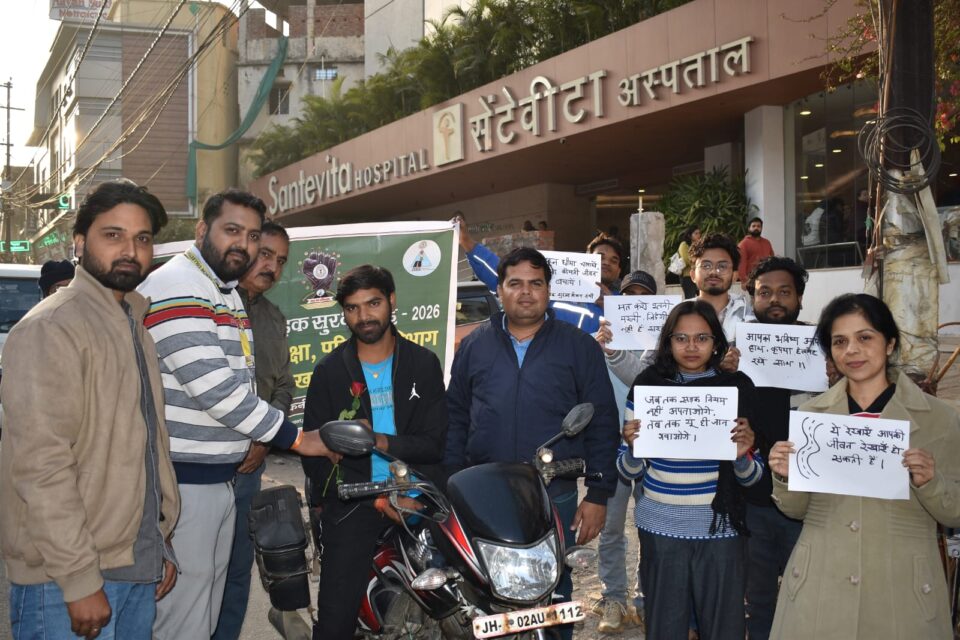 रांची (ख़बर आजतक) : उपायुक्त रांची मंजुनाथ भजंत्री के निर्देशानुसार राष्ट्रीय सड़क सुरक्षा माह के अंतर्गत जिला परिवहन पदाधिकारी अखिलेश कुमार के नेतृत्व में “रोज एट रोड” कार्यक्रम का आयोजन किया गया। सामाजिक संस्था समर्पण चैरिटेबल ट्रस्ट, रिलेशंस एवं एक्टर्स माइंड एक्टिंग स्टूडियो के सहयोग से एचबी रोड स्थित सेंटेविटा अस्पताल के समक्ष सड़क सुरक्षा जागरूकता अभियान चलाया गया। इस दौरान यातायात नियमों का उल्लंघन करने वाले युवाओं को गुलाब का फूल देकर नियमों के पालन के लिए प्रेरित किया गया। वाहन चालकों को हेलमेट पहनने, सीट बेल्ट के उपयोग और सड़क नियमों का पालन करने की शपथ दिलाई गई। बच्चों ने “हेलमेट लगाओ–जीवन बचाओ” सहित विभिन्न स्लोगन के माध्यम से लोगों को जागरूक किया। मौके पर जिला रोड इंजीनियर एनालिस्ट गौरव कुमार सहित कई सामाजिक कार्यकर्ता व संस्थाओं के प्रतिनिधि उपस्थित थे।