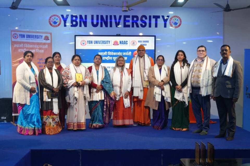 रांची (ख़बर आजतक) : राजउल्लातु स्थित वाईबीएन विश्वविद्यालय एवं मां शारदे मंच के संयुक्त तत्वावधान में सोमवार को राष्ट्रीय युवा दिवस एवं स्वामी विवेकानंद जयंती का आयोजन उत्साह और जोश के साथ किया गया। कार्यक्रम की शुरुआत स्वामी विवेकानंद को पुष्प अर्पित कर एवं दीप प्रज्वलन के साथ हुई। मुख्य अतिथि आजापानंद महाराज (रामकृष मिशन) सहित विश्वविद्यालय के चेयरमैन रामजी यादव, अंजू यादव, वाइस चांसलर प्रो. सत्यदेव पोद्दार, सीएमडी डॉ. अंकिता यादव व अन्य गणमान्य उपस्थित रहे।