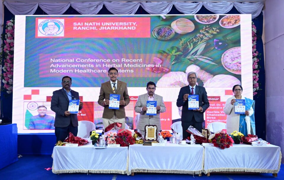 राँची (ख़बर आजतक) : साईं नाथ विश्वविद्यालयमें बुधवार को “Recent Advancement in Herbal Medicines in Modern Healthcare System” विषय पर दो दिवसीय राष्ट्रीय सम्मेलन का भव्य शुभारंभ हुआ। 11–12 फरवरी को आयोजित इस सम्मेलन में देशभर से शिक्षाविद्, वैज्ञानिक, आयुर्वेद विशेषज्ञ, चिकित्सक और शोधार्थी शामिल हो रहे हैं। कार्यक्रम की शुरुआत दीप प्रज्वलन और सरस्वती वंदना से हुई।